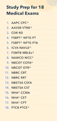 Unlock thousands of Medical certification exam practice questions and mock exams for the PTCB PTCE, CDR RD, NHA CPT, AAPC CPC, AAVSB VTNE, and more with Pocket Prep, the largest provider of mobile test prep for professional certifications.