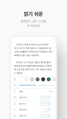 - 밝기, 글자 크기와 글꼴, 책 배경 색까지 선택할 수 있습니다.