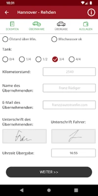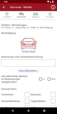 Funktionen: - Übersicht der Aufträge - Schadenskizze inklusive Bilder - Übernahmeprotokollierung mit Aufzeichnung des Fahrzeugzubehörs, Funktionscheck, Bilder Übernahme und Unterschriftsaufzeichung - Übergabeprotokollierung mit Fotoaufnahmen und Unterschriftenaufzeichnung - Auslagenabrechnung