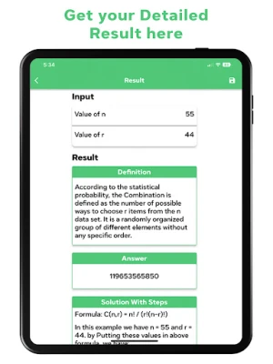 Combination Calculator is a very useful app for math students of all ages and grades. It enables you to generate all possible and maximum combinations with the repetition of any equation.