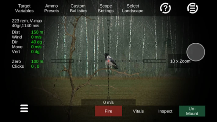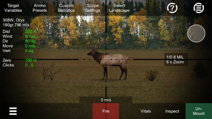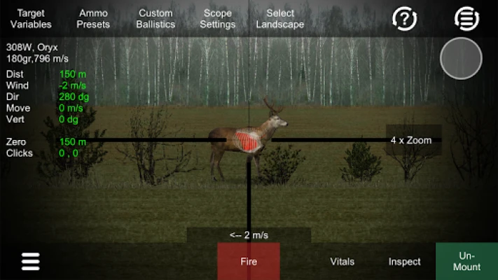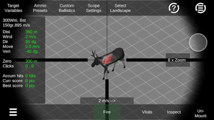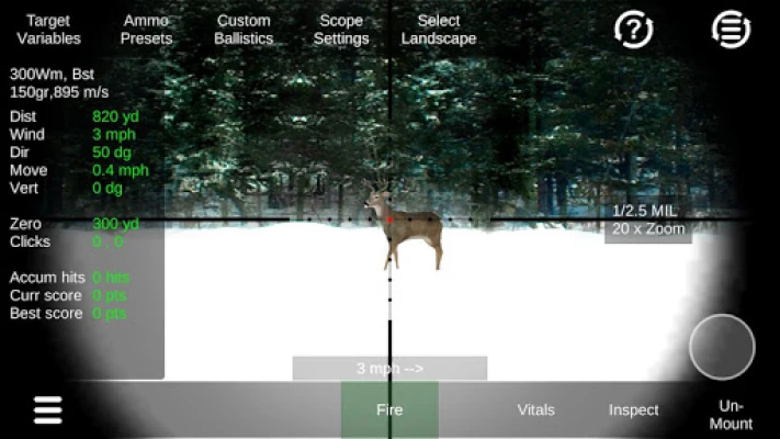 Practice deer hunting or other game types using realistic adjustable scope, accurate ballistics and lots of environment variables such as distance, wind, movement, direction, vertical angle and amount of daylight.