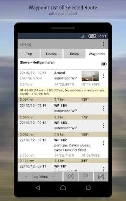 ➤ An editable waypoint-list for each route of your trip lets you create a detailed diary of your complete journey. LD-Log will allow you to enter text or shoot photos in-app as well as import them at a later time. As a sailor, use the sail mode which lets you keep a complete nautical ship's log in an intuitive manner. Many different options are available for convenient storage of trips, routes and journals.