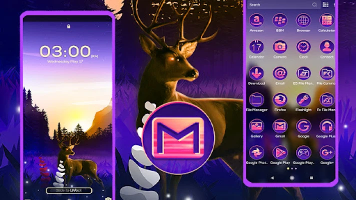 The Majestic Deer Launcher Themes is a cute theme for Android with cool Deer Forest wallpaper and incredibly imaginative custom app icons that will surely make your phone stand out. By downloading it today, personalise your phone!