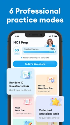 NCE Exam Prep 2025 is an application carefully designed and developed by industry exam experts. With more than 1,200 high-quality questions and answers, multiple testing modes, and a scientific analysis system, it helps you practice anytime, anywhere, making it more likely that you will pass the NCE certification exam on the first try!