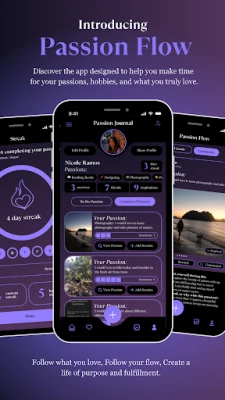 Live Mindfully and Authentically: Passion Flow is more than just an app—it’s your personal guide to reconnect with yourself, dream boldly, and live the life you truly love.