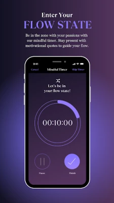 Enter Your Flow State: Use our mindful timer to stay present and fully immerse yourself in your passions. Pair it with motivational quotes that keep you inspired.